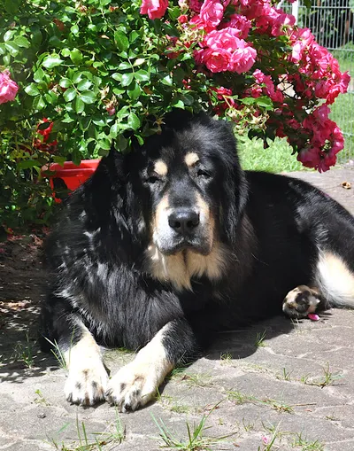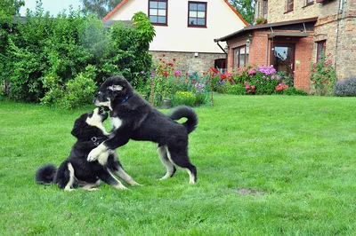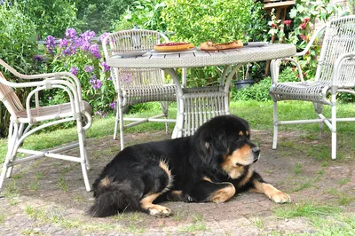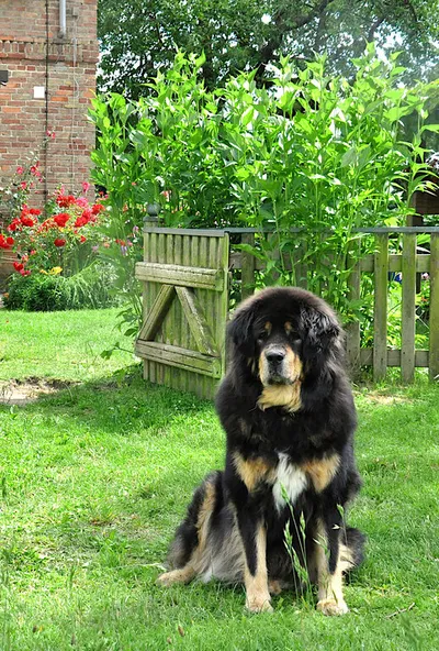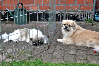 Nach einem kurzen gegenseitigen Beäugen gibt es kein Halten mehr. Das Gartentürchen zum großen Garten wird geöffnet und vier Tibet Spaniel stürmen sechs DoKhyi voran über die große Wiese.
