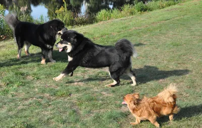 Schöne Fotos von übermütig tobenden, als auch zufriedenen und gesunden Do Khyi und auch der Tibet Spaniel mischt kräftig mit.