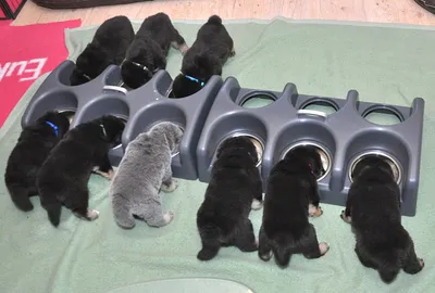 Uns geht es Pudel-, Entschuldigung DoKhyi - wohl. Obwohl sich unsere Zweibeiner nichts mehr wünschten als zwei gesunde Würfe, sehen sie ganz schön mitgenommen aus. Kein Wunder. Es ist eben doch ein Unterschied, ob 24 oder 64 kleine Pfötchen die Wassernäpfe umstossen, wenn sie ausgelassen toben. Auch der Ruf nach Futter klingt im Chor der 16 Tenöre viel nachhaltiger, als der Kammerchor des A-Wurfes.