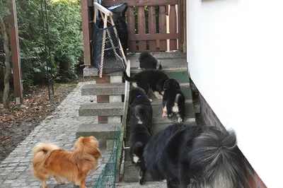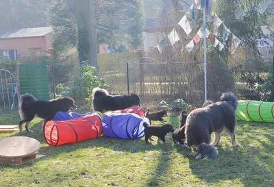 Kaum einmal im Garten angekommen, wurde sofort der Zaun inspiziert. Es wären keine Do Khyi, würden sie nicht binnen Minuten eine Schwachstelle gefunden haben. Wie vom Magneten gezogen, ging es, der Gruppendynamik Folge leistend, ab in die unendlichen Weiten des Gartens. Nicht, ohne uns das so typisch verschmitzte Grinsen eines sich seines Fehlverhalten bewussten Do Khyi zu zeigen.