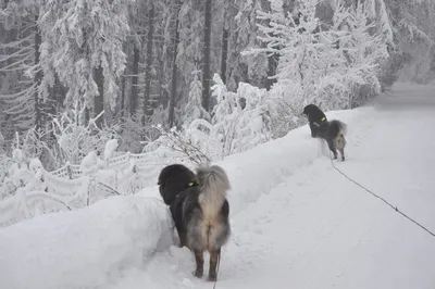 Winterlandschaft pur, wie ihr auf den Bildern sehen könnt, allerdings bleibt Euch die gefühlte Temperatur von – 25 °C erspart. Landschaft, Hunde und Menschen trugen nach Minuten in Sturm und Nebel eine Eiskruste. Und mit einfrierenden Augen haben wir ihn entdeckt – dort ganz hinten am Waldrand lief er, der …... so, es war höchste Zeit für einen Glühwein !! Aber er hätte dort hin gepasst, der Yeti.
